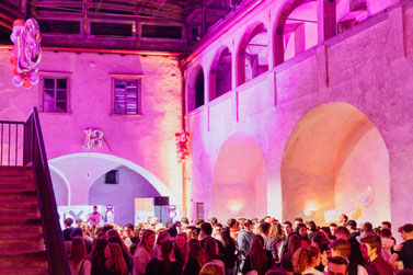 Danach geht es mit organisierten Bussen zur Partylocation ins Schloss Maretsch nach Bozen, wo sich alle Jungbürger:innen treffen und gemeinsam auf ihre Volljährigkeit anstoßen und diese gebührend feiern.
